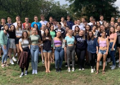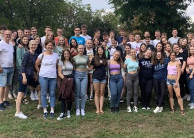 Idén 60 diákkal és 8 felnőttel vágtunk neki a két napos programnak. Ismerkedés, játékok, és hatalmas zenés buli várta a gólyákat, de a Porkoláb házaspárnak köszönhetően a lelki felfrissülés is megtörtént. Mély barátságok alakultak ki és az osztályközösségeknek is nagyon jó tett a két nap.